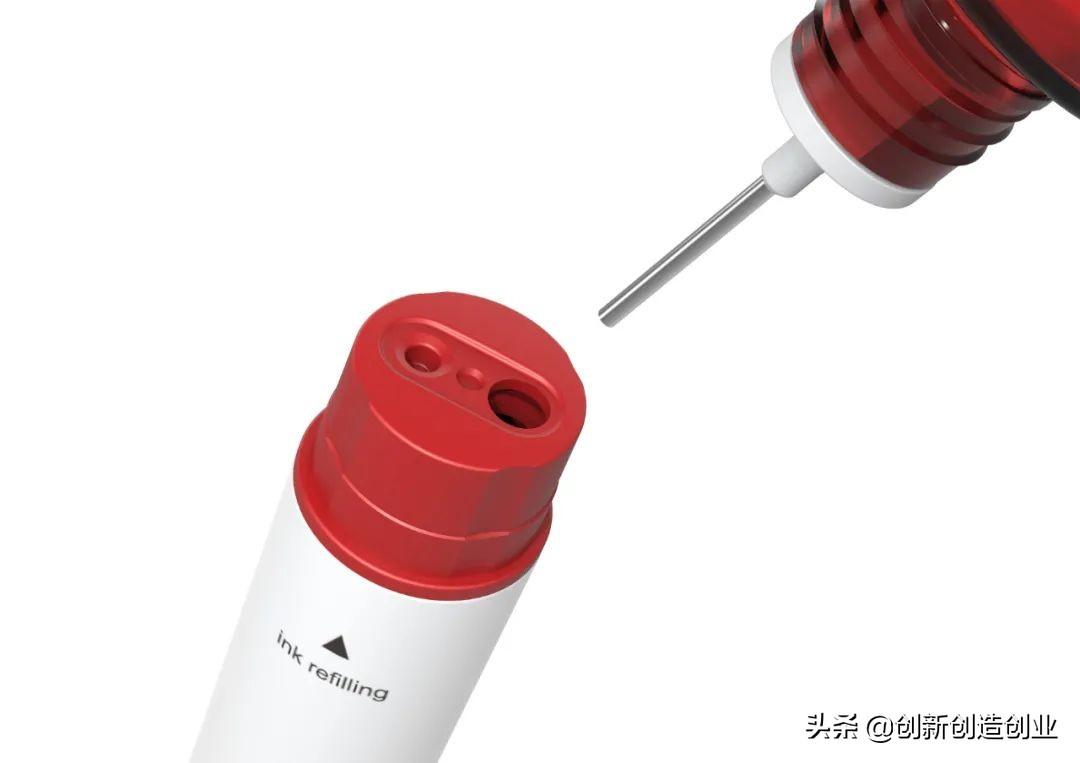 简单的设计和线性的风格;全新结构,按压转动开启注墨孔,墨水瓶采用细管注墨,更加方便。旋转以关闭孔并防止墨水泄漏。水性记号笔安全环保,无刺激性气味污染,附着力更强。