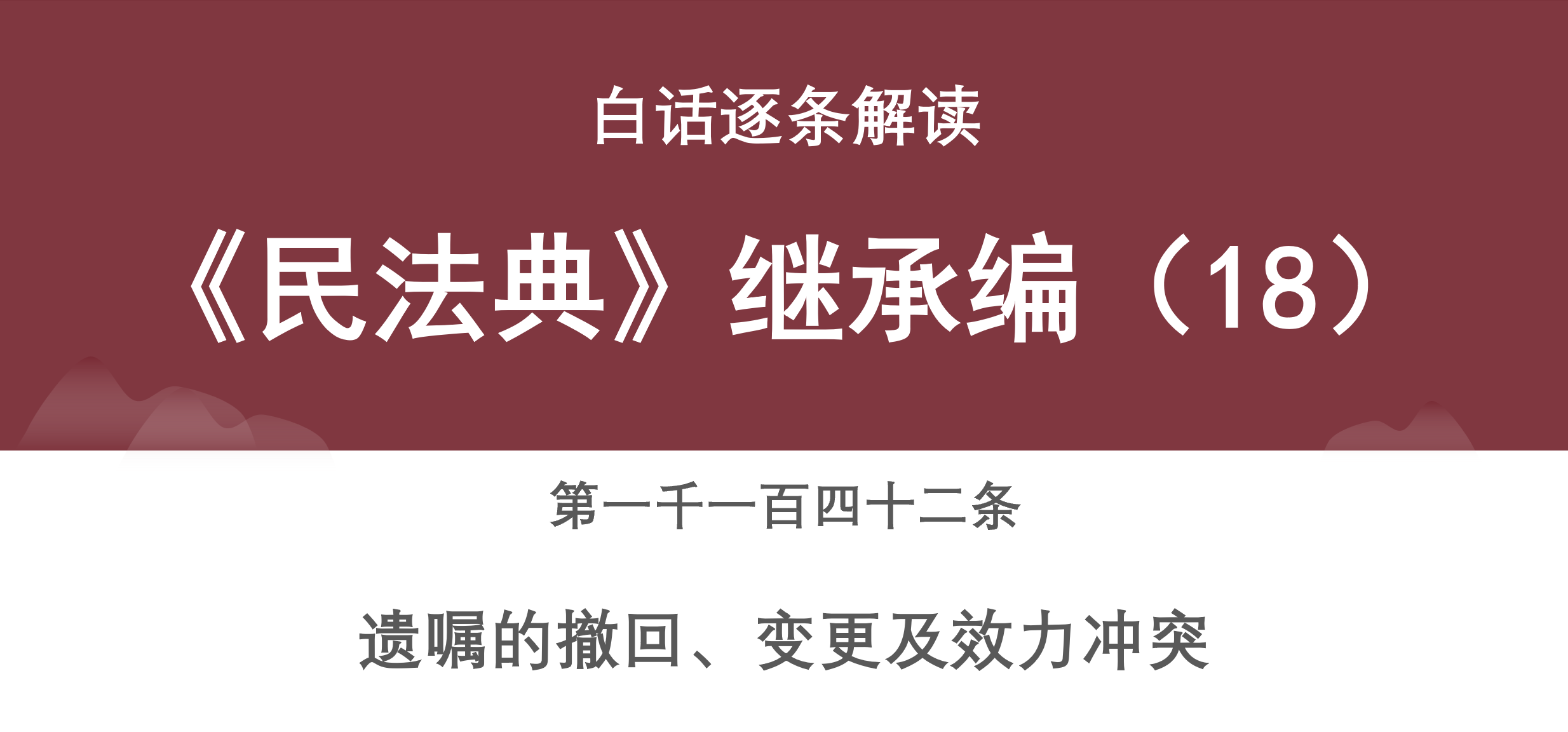 在本条规定中提到一个词语:撤回。这个词语也是对《继承法》一个较大的变化。撤回、撤销意义完全不同,在遗嘱生效之前,“撤销”是一个错误用词——撤销指的是遗嘱发生效力之后的动作。但遗嘱一旦生效,意味着遗嘱人已经过世,遗嘱人还怎么可能撤销?