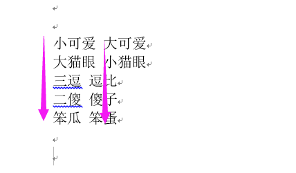 第二步:当制表符添加完成后,就可以在需要对齐的信息前,敲“Tab”键,那么,对应的信息会在相应的制表符下停止。如下图所示,分别停留在了对应的制表符上。