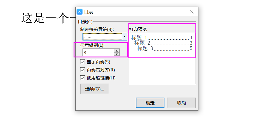 继续在“目录”下根据自己的需要设置目录的样式,如下图所示的“打印预览”。