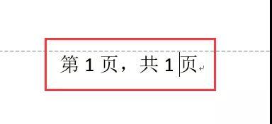 第二步:在第一步的基础上,我们手动在数字“1”前后分别添加上“第 页,共 页”,并将光标置于“共”和“页”字的中间,为下一步做准备。