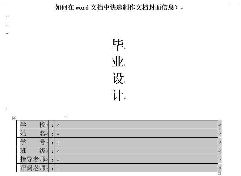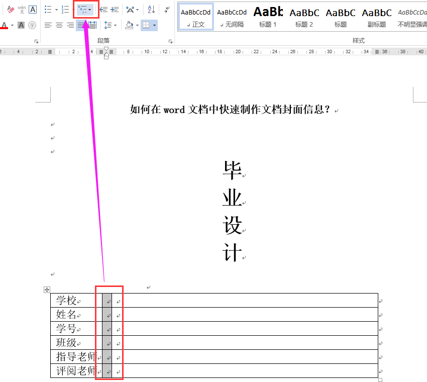 第六步:选中整个框线中的文本,单击“设计”,边框选择“无框线”。然后再单独选择第三栏,边框选择“内部框线”和“下框线”。确定后,整个封面信息就完美的呈现啦~