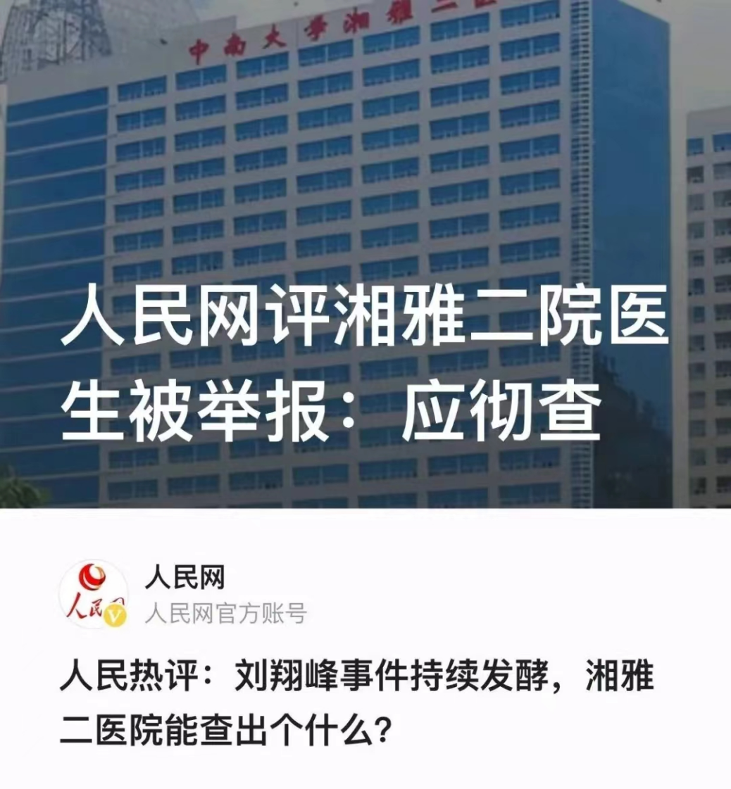 此前,有网友发文举报,中南大学湘雅二医院医师刘翔峰医德医风败坏,有违规诊疗行为,引起广泛关注。