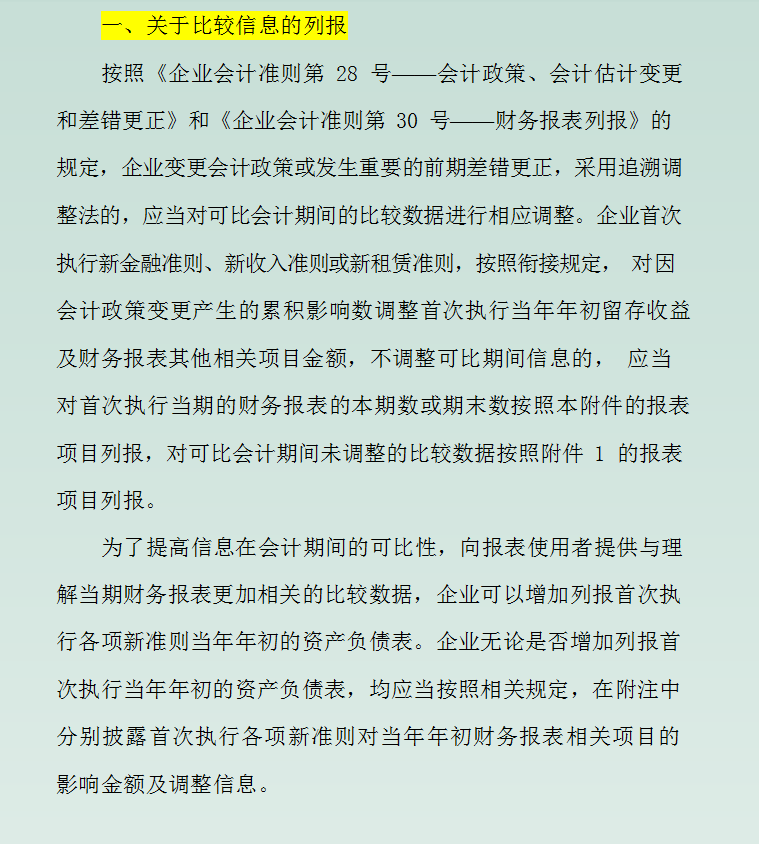一、关于比较信息的列报