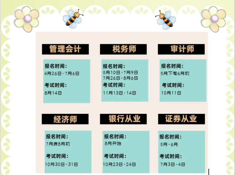 我为大家准备了最近可以报名的会计考试,大家可以看看考虑自己要不要进行报名,大家根据需求来决定哟!