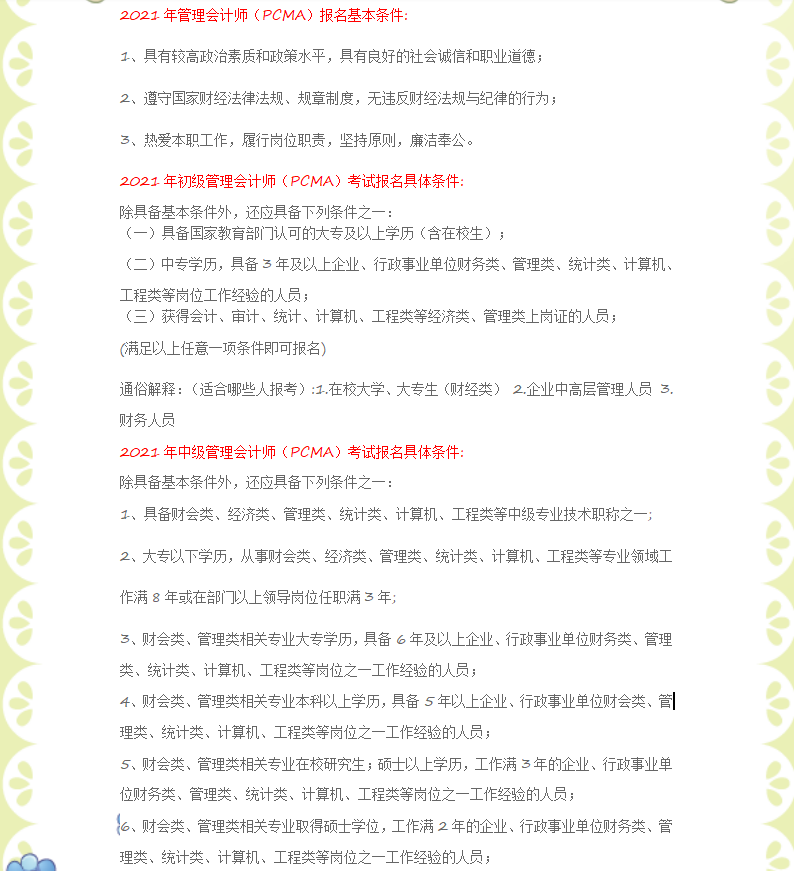 2021年管理会计师报名条件