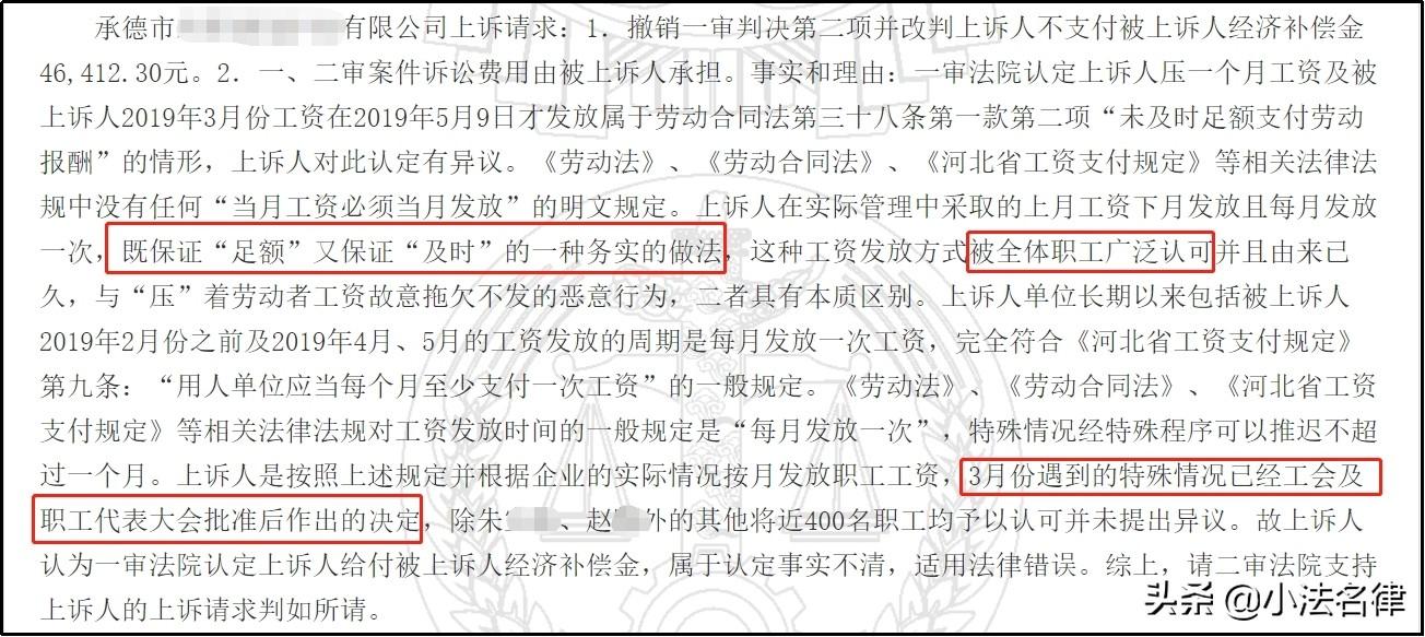公司不服一审判决,提起上诉。认为公司3月遇到特殊情况,5月发工资不能视为故意拖欠。