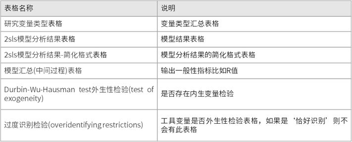 上一表格展示本次研究时涉及的各变量属性,包括被解释变量,内生变量,工具变量和外生变量组成情况。