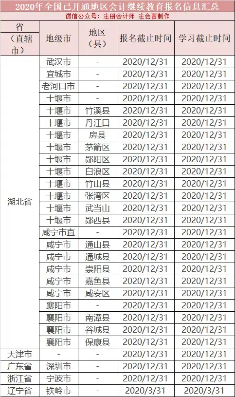 那么截止日前,已经有哪些地区开通了2020年的继续教育呢?四姐给大家整理了一份最新表格: