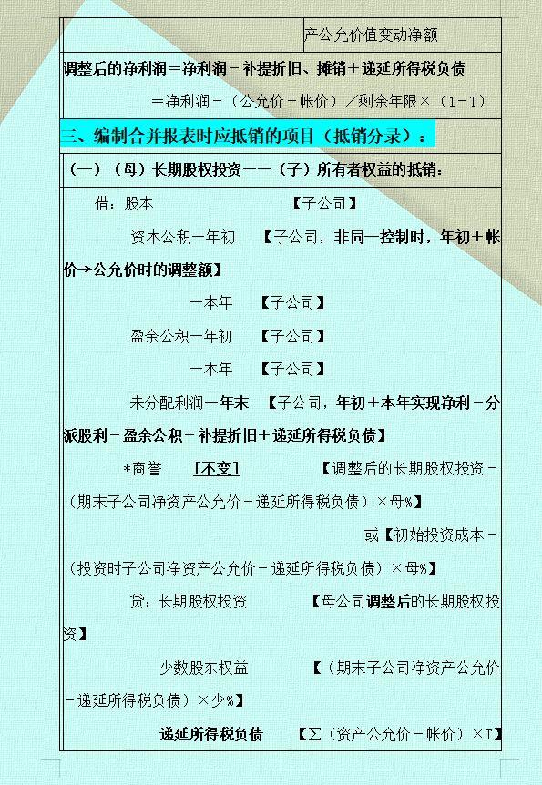 以上就是小编给大家整理的CPA合并财务报表总结,总共19页,因篇幅有限,先整理这么多。