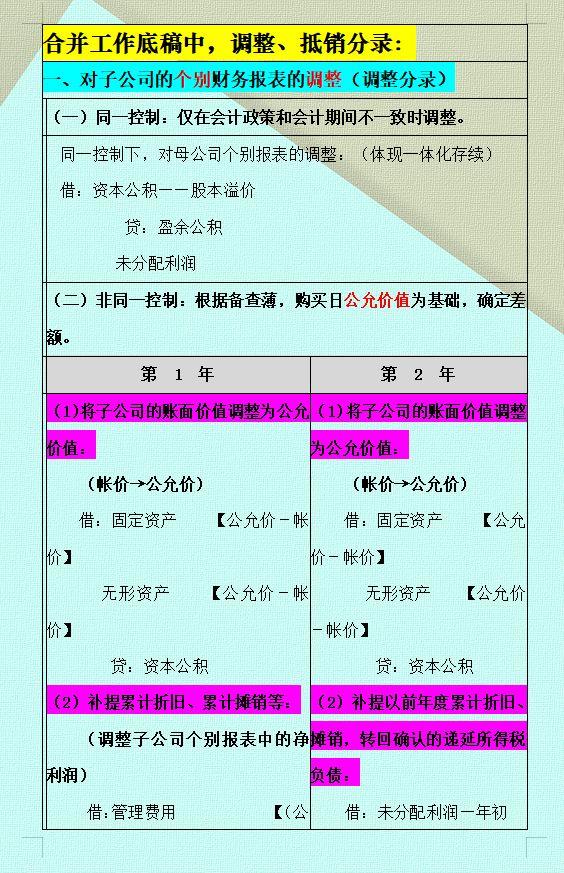 在注会中,同样的也有分录内容,在非同一控制下或在同一控制下,对企业的账务、财务进行分析。还有长期投资的调整,还有合并报表时发抵消项目分录。