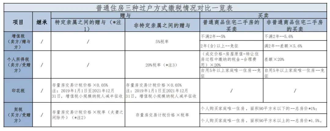 见Part 2《普通住房三种过户方式缴税情况对比一览表》