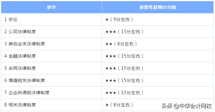 主观题(简答题、综合题)一般出自“二、三、四、五、六、七章”,其中公司法、合伙企业法、票据法、合同法、增值税、企业所得税为高频命题章节,大家要重点关注这几个章节的学习。