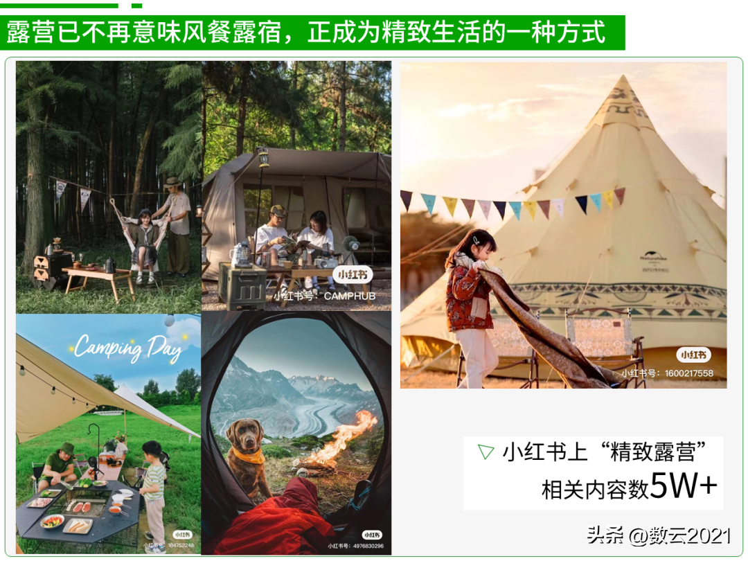 据中央广播电视总台财经节目中心发布的《中国消费品牌趋势(2022)》报告数据显示,自2020以来,露营相关搜索在小红书呈连年上涨趋势,其中2022年4月与“露营”相关的笔记同比增长997%。
