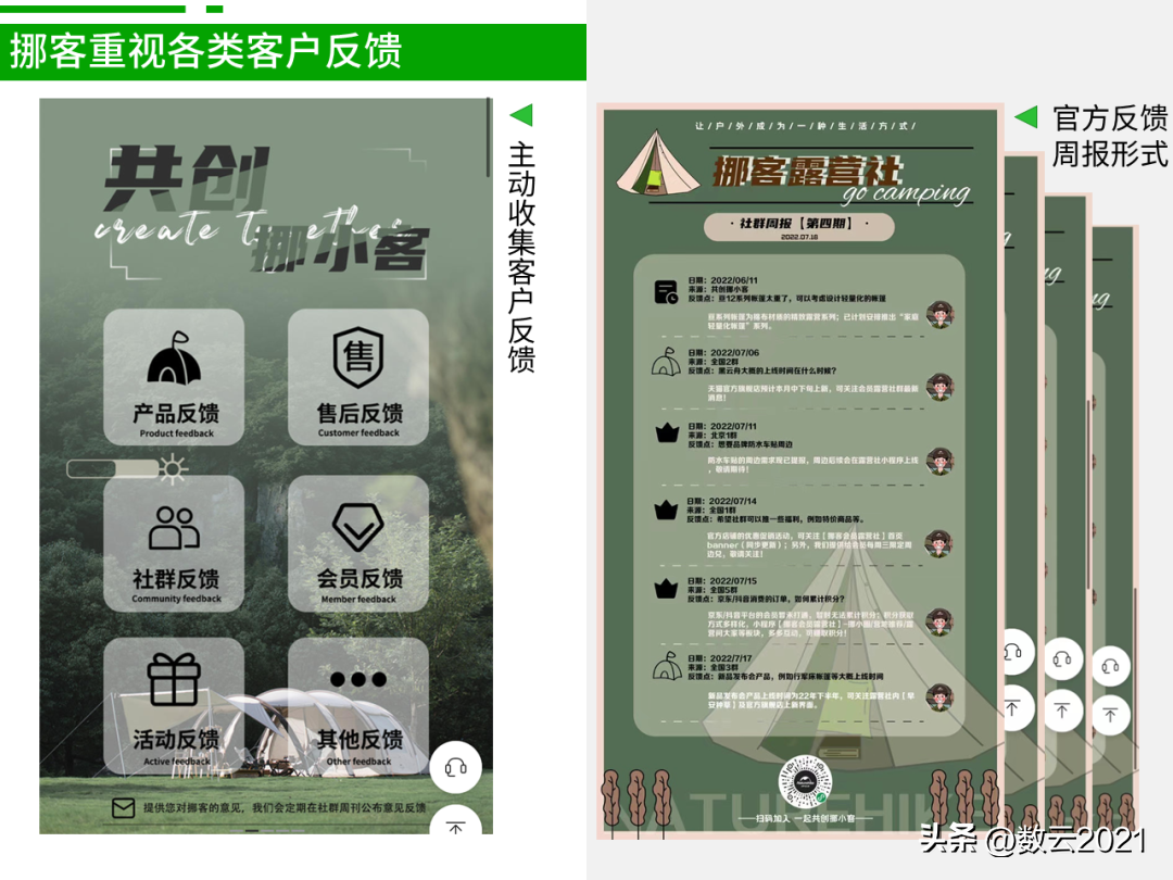 不仅是产品反馈,挪客还会收集社群反馈、会员反馈、活动反馈等,并通过社群周报的形式逐一回复。这种让消费者参与优化品牌各环节的活动,挪客称之为“共创”,不仅有利于做好产品和服务,还能加深会员和品牌间的羁绊,提高会员对品牌的归属感和认同感。