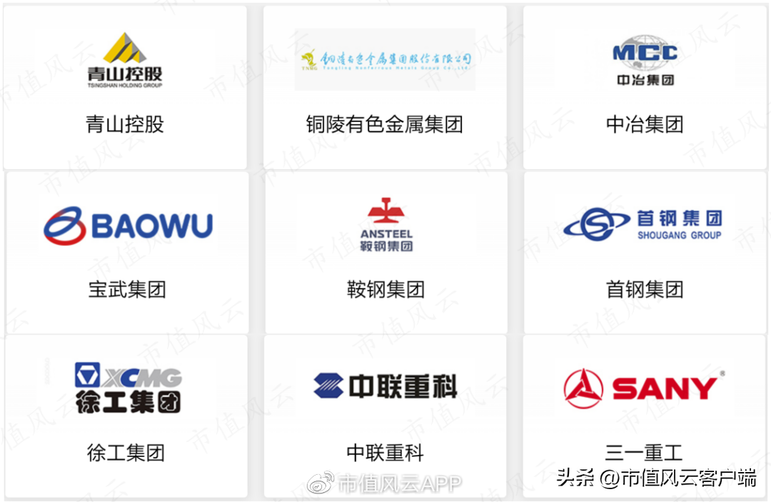 (1)冶金行业:青山控股、铜陵有色金属集团、中冶集团、宝武集团、鞍钢集团、首钢集团等;