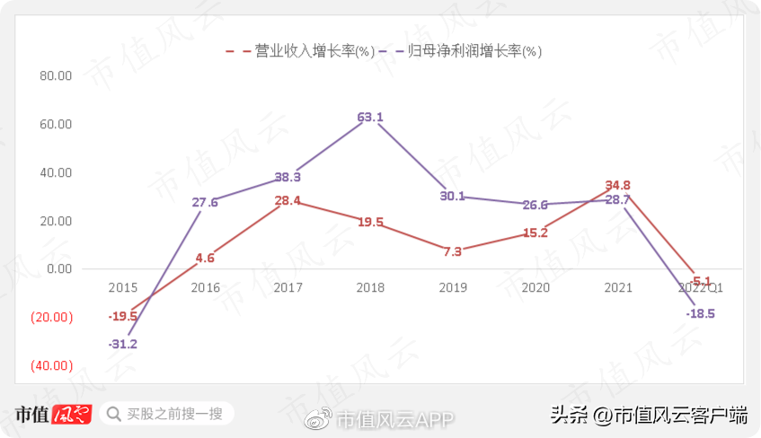 (3)2022年一季度营收同比下滑5.1%,归母净利润同比下滑18.5%。