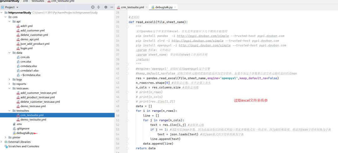 pip install httprunner==2.5.7 -i http://pypi.douban.com/simple --trusted-host pypi.douban.compip install har2case使用excel传数据需要用到以下库