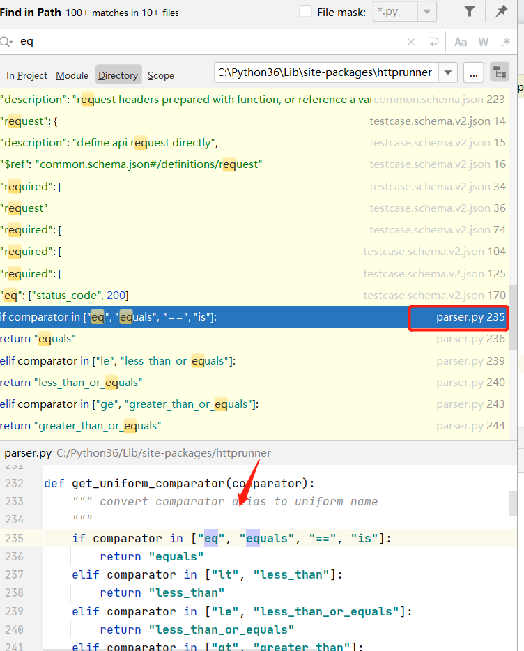 external Libraties->lib->site-packages->httprunner->schemas这里会对关键字是会用进行说明解析parser.py(解析器)