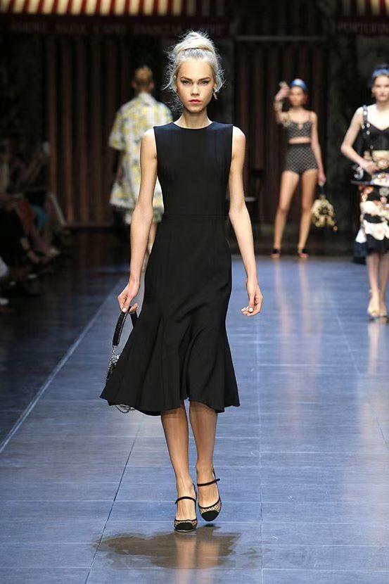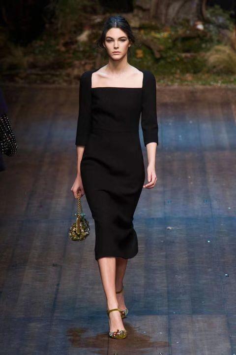 许多小黑裙的设计之所以没有那么多亮点,就是因为剪裁不够独特,下面这款领口采用斜V领设计的无袖小黑裙,领口和袖口的设计都十分独特,更好的展现出了这位成熟女士与纤细的双臂线条以及小V领,配上脚上的丝绒绑带细高跟,优雅魅力倍增。