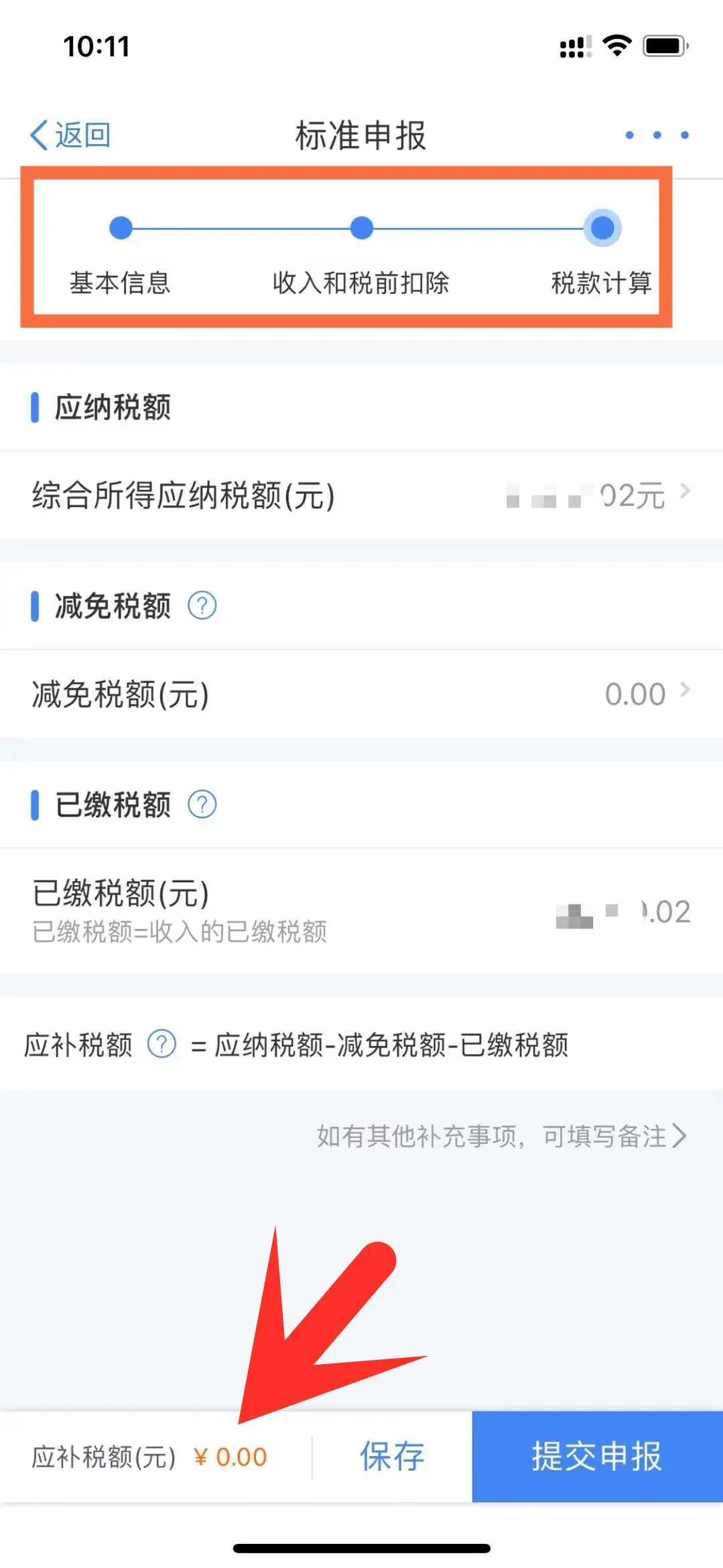 小会提醒:税款计算页面,左下角【应补税额】为本次申报应补或应退税金额,点提交申报前,一定要确认自己是补还是退哦。