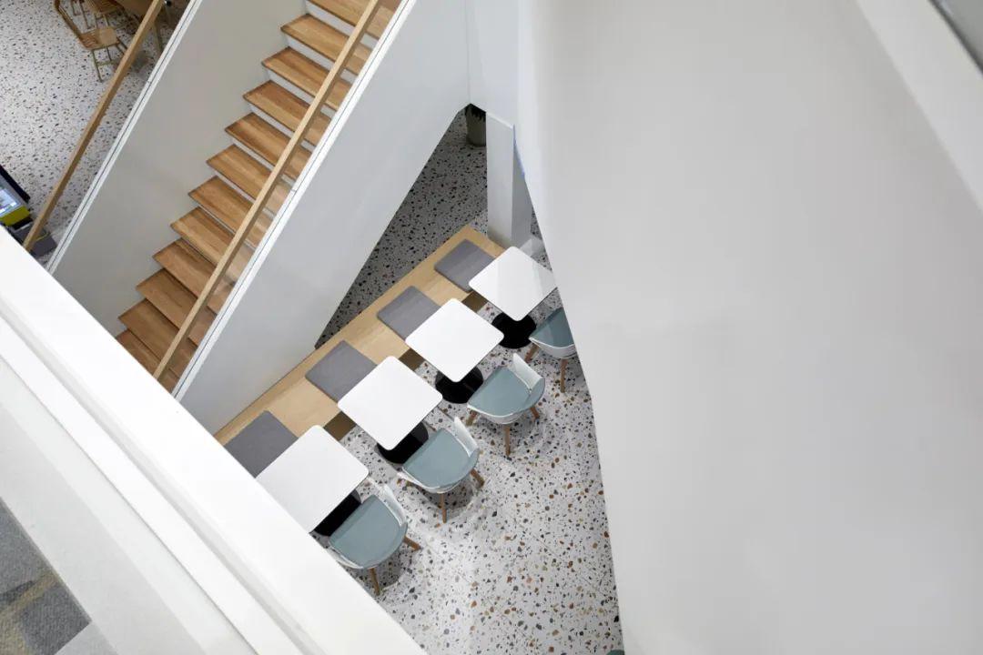 顶部柔和的灯光配上最贴近自然的材质,温暖而舒适,枯燥乏味的会议也变得不那么无聊起来。阶梯的打造既可以满足不同人数会议的需求,在闲置的时候还可以给员工们提供一个午休“躺平”的空间,美观又实用!