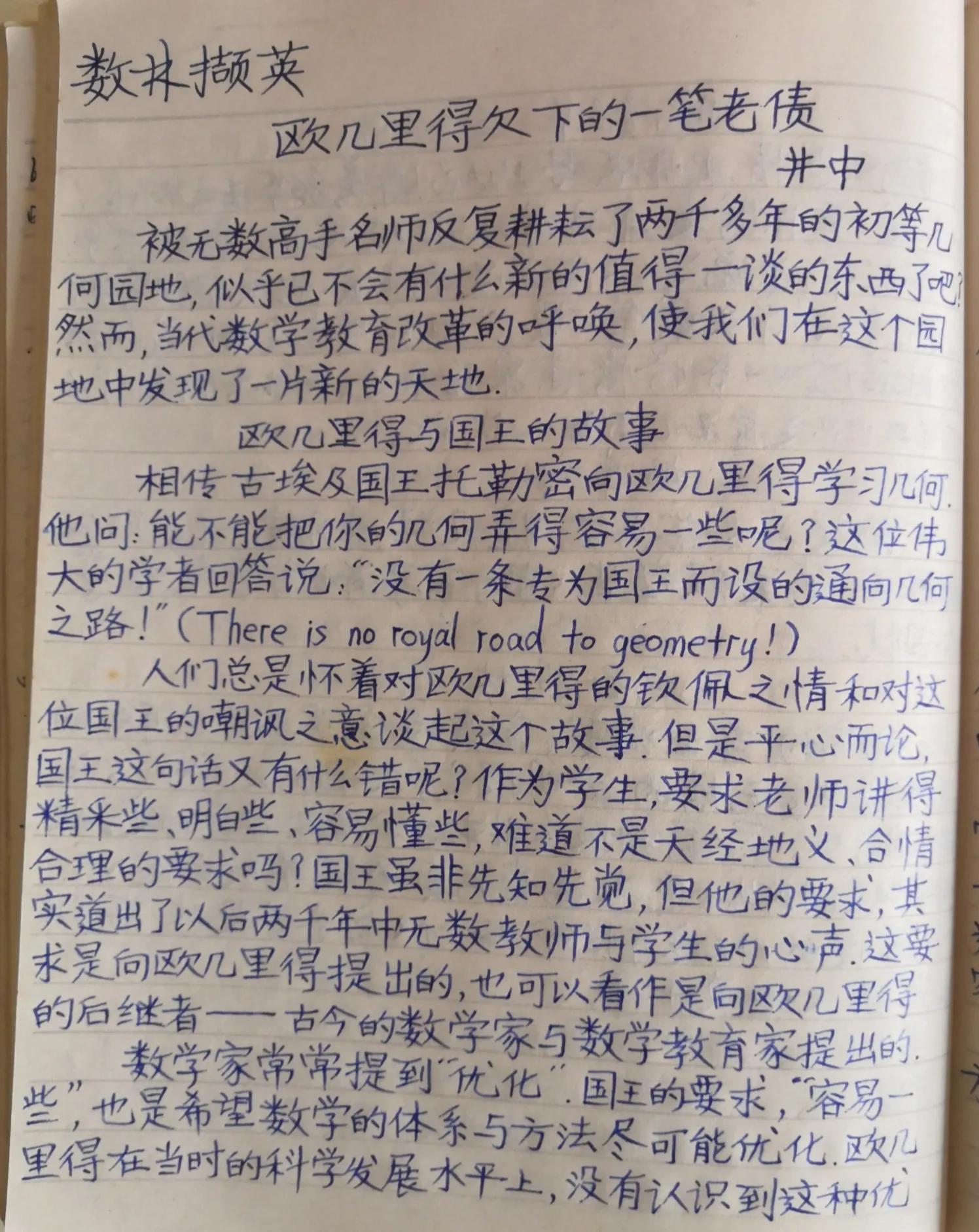 这位伟大的数学家和教育家严肃地回答说:“几何无王者之路!”