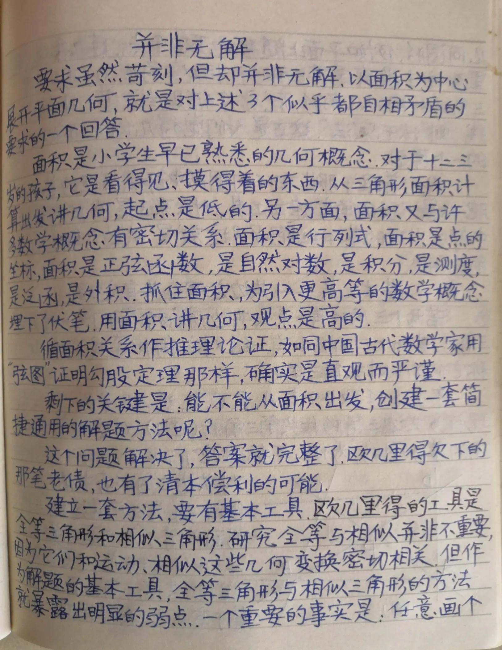 但是,珍贵的遗产同时又是沉重的负担。以欧氏几何体系为主的中学初等几何成为了学习路上的一只拦路虎。“几何几何,叉叉角角。老师难教,学生难学。”