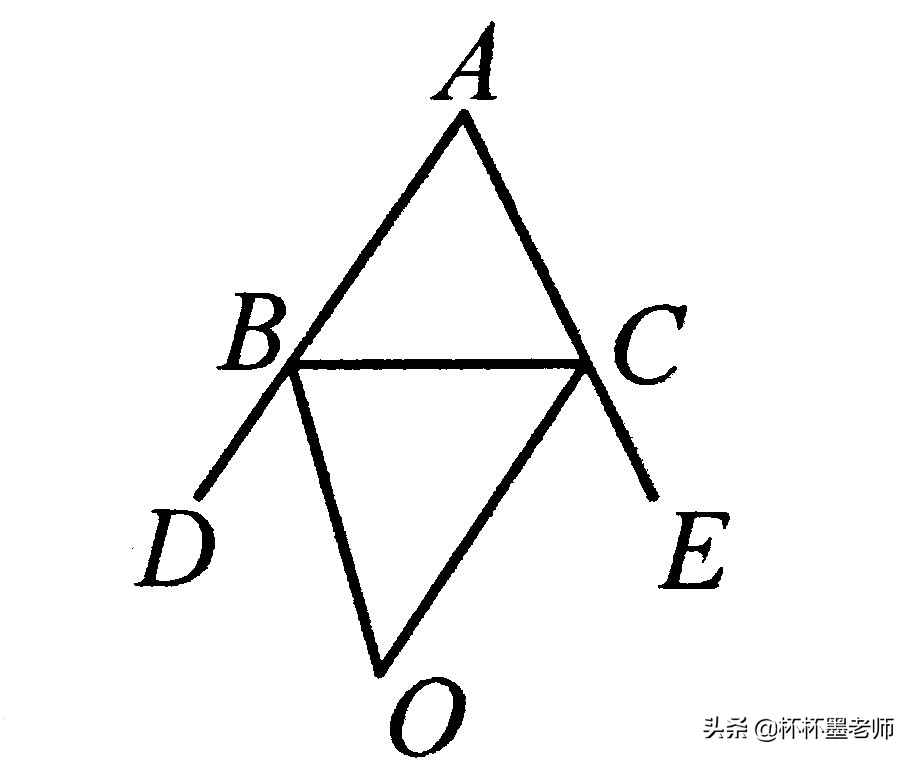 如图,已知BO、CO是∠CBD、∠BCE的角平分线,则有∠O与∠A的关系是?视频讲解:两个外角的角平分线的夹角