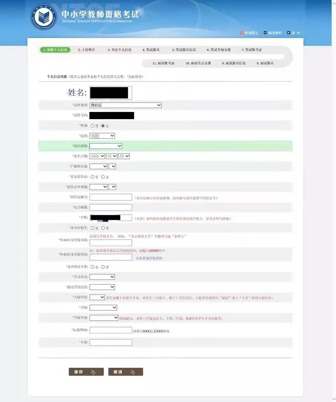 接下来就是个人信息填报了,先来看看页面需要填写的内容,主要包括身份信息、所在地信息、学籍学历信息。
