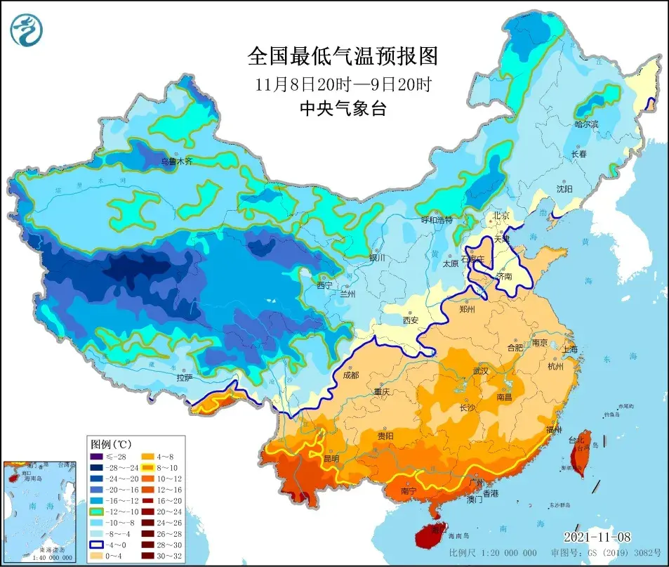最低温度:西部山区零下3度到零下1度;北部、东部0度左右;其他地区1到3度。