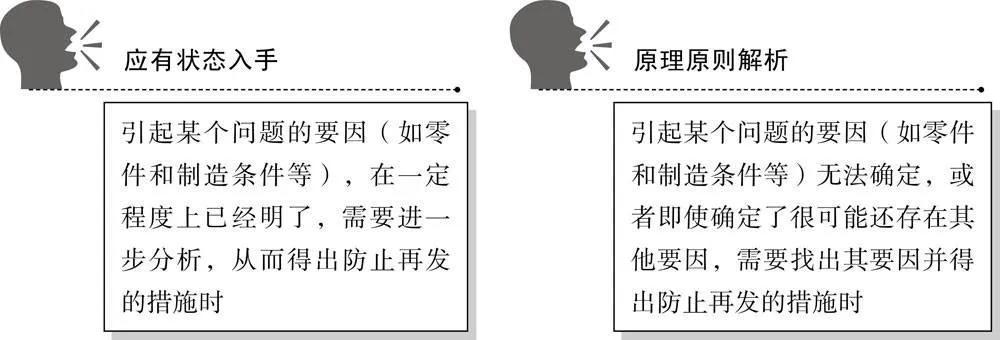 两者没有严格的区分标准。开始的时候,对容易理解和解析的部分利用“应有状态入手法”分析,遇到比较难解的地方可以利用“原理原则解析法”来分析,如图所示。