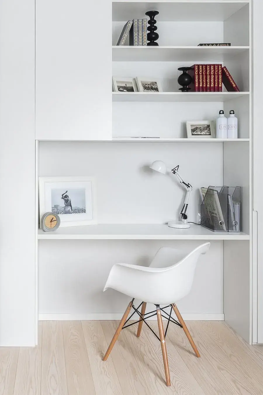 也通过安置小型书桌椅,赋予办公、阅读的基本机能。