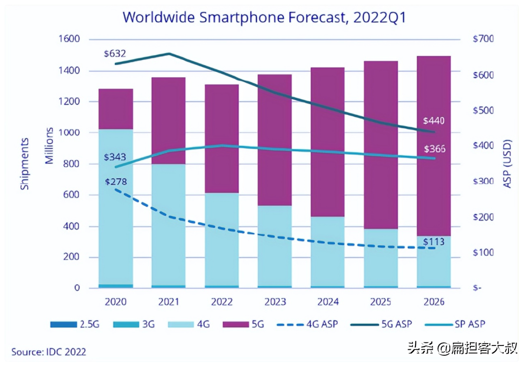 受疫情和大盘影响,2022年全球智能手机出货,将同比下降3.5%,至13.1亿部左右;而作为第一消费国的中国将减少3800万,这一数字将是2021年的11.5%。