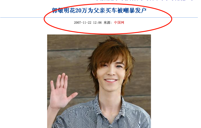 在赚到了一大笔钱之后,郭敬明在他爸爸50岁的时候,花了20万给他买了一辆车。