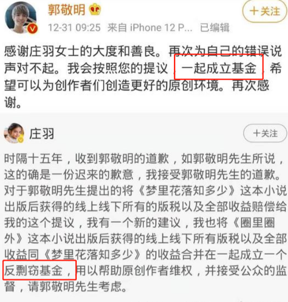因为里面的声明涉及到郭敬明是否还能在娱乐圈继续发展,所以郭敬明第一时间认怂,选择向庄羽正式道歉。