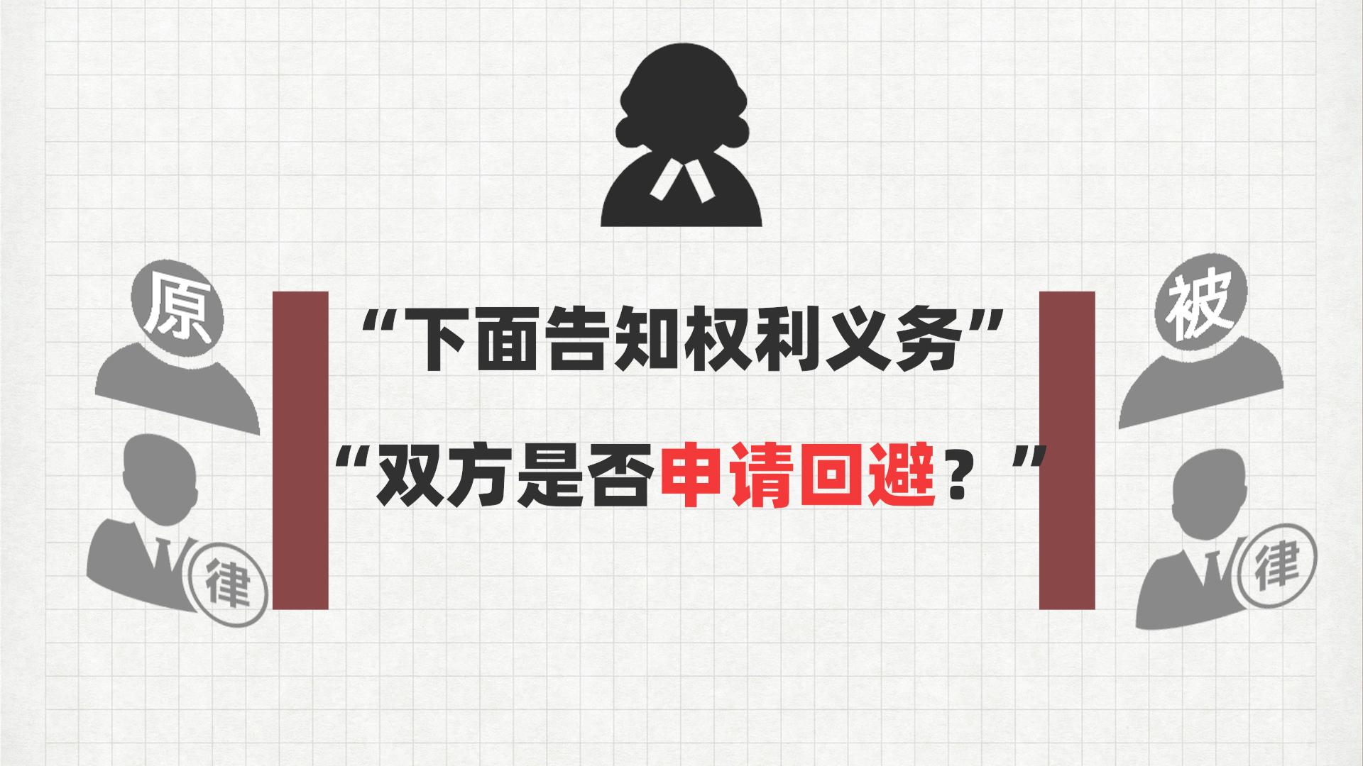 最后会问你们双方是否需要申请回避。回避是民事诉讼的一项制度,如果你觉得法官和对方存在某些利益关系,那么你可以提出回避申请。一般来说比较少见。所以直接回答不申请回避就可以了。