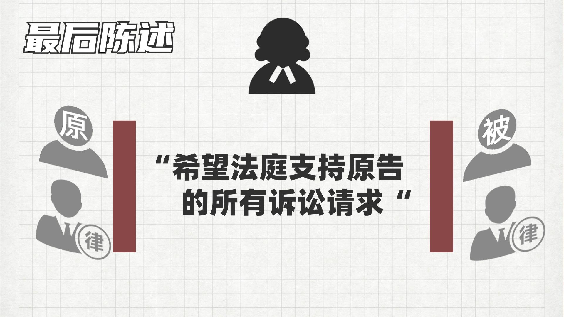 法庭辩论阶段结束后,法官会让原、被告双方进行最后的陈述。一般情况下,原告只需要说“希望法庭支持原告的所有诉讼请求”就可以了。