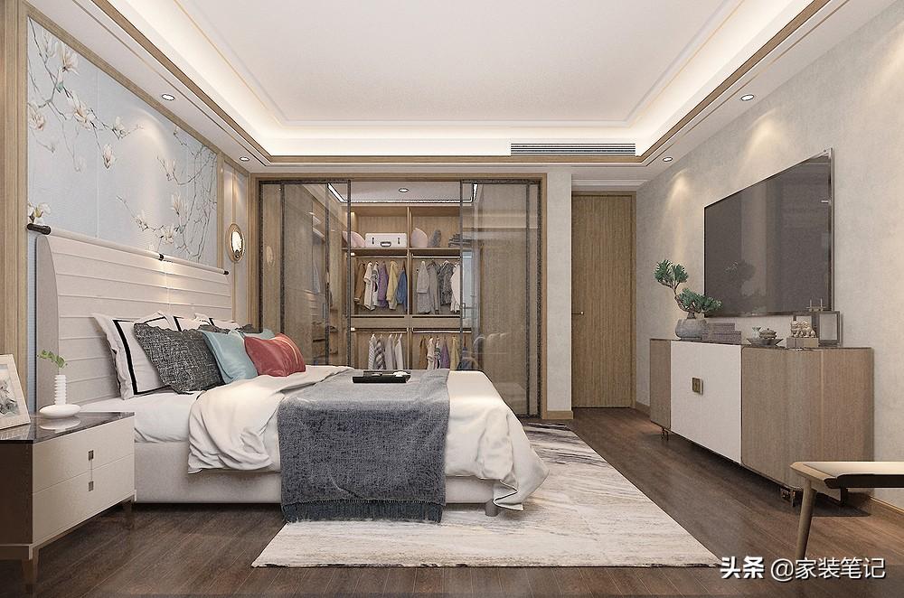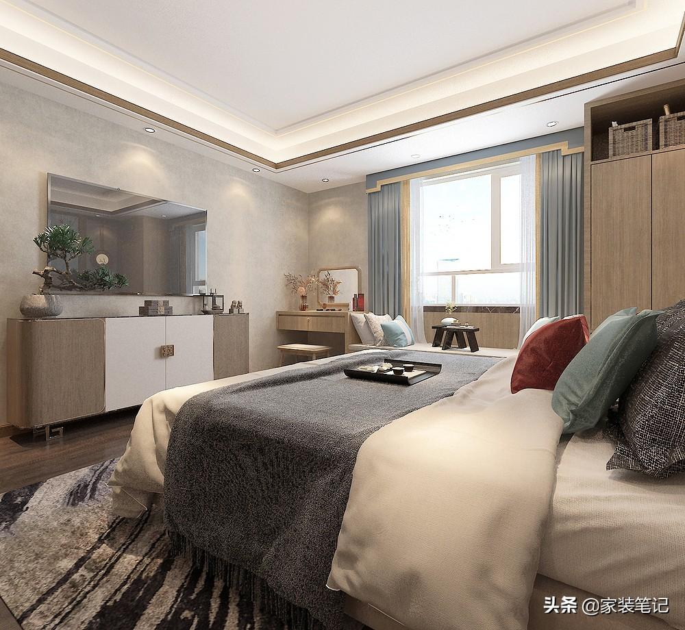 东方雅艺与现代简约的相逢,交融出安宁、温馨的情调。当我们身处其中,居一隅而知山水的意境如品茶般令人回味无穷。主卧室原本是没有飘窗的,但是仍然还是做了一组飘窗柜,因为它美观、实用,能够为卧室增加储物功能,还把梳妆桌也做出来了。