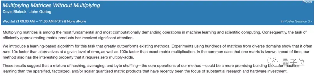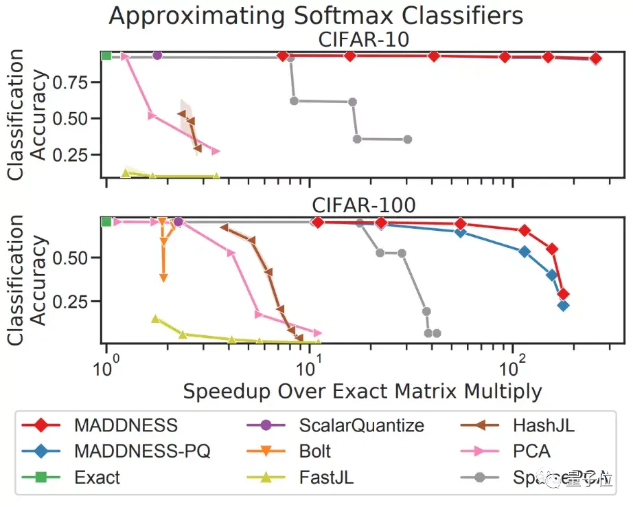 这是来自MIT的最新研究,他们提出了一种新的近似算法MADDNESS,在确保一定精度的情况下,将速度提升到了现有近似算法的10倍,比精确算法速度快100倍,被ICML 2021收录。