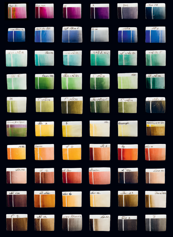 梅森瓷盘上的颜色亚伯拉罕·戈特洛布·维尔纳的颜色合集,共有249块瓷砖,大小约为5厘米X3.9厘米
