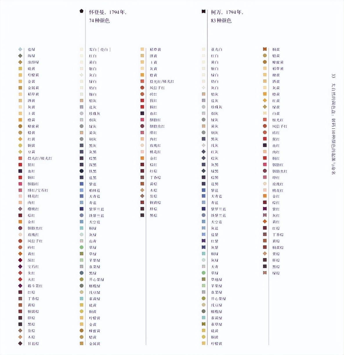“维尔纳色彩命名法”是德国地质学之父维尔纳发明的一套描述颜色的科学术语。