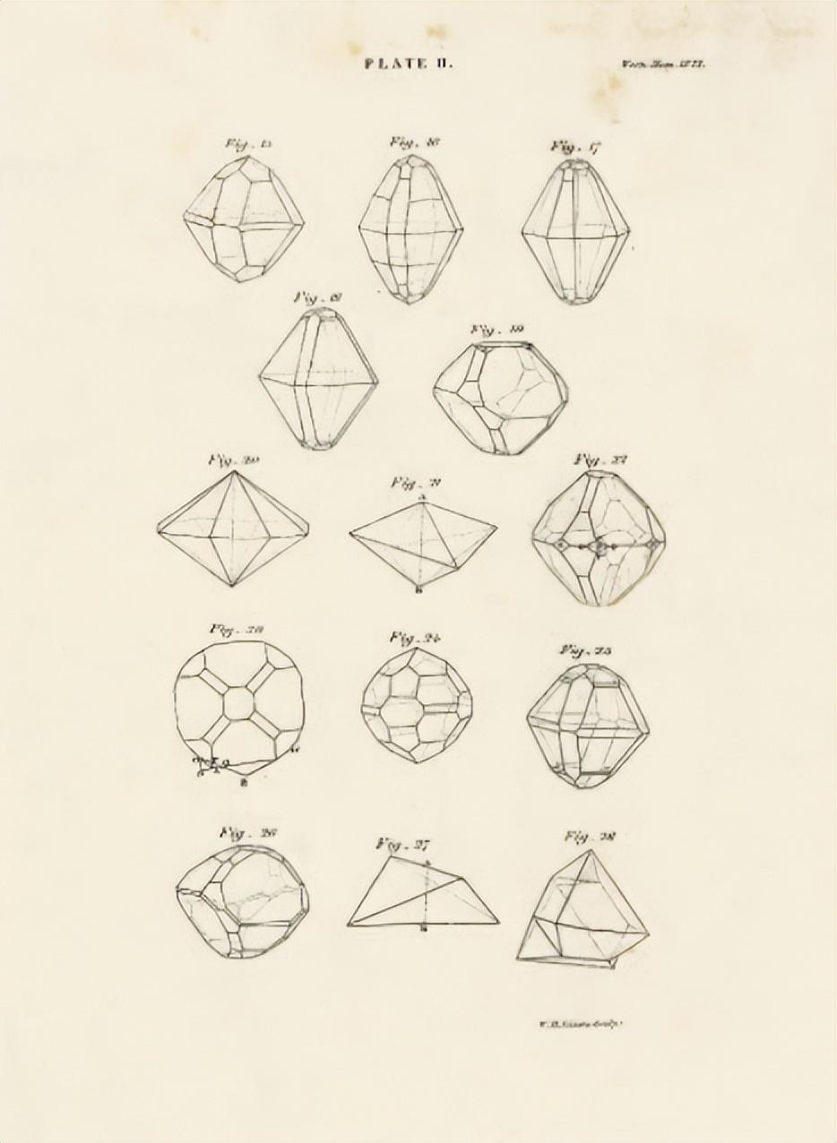 铜黄矿石的晶体结构,《维尔纳自然历史学会回忆录》,1822年。