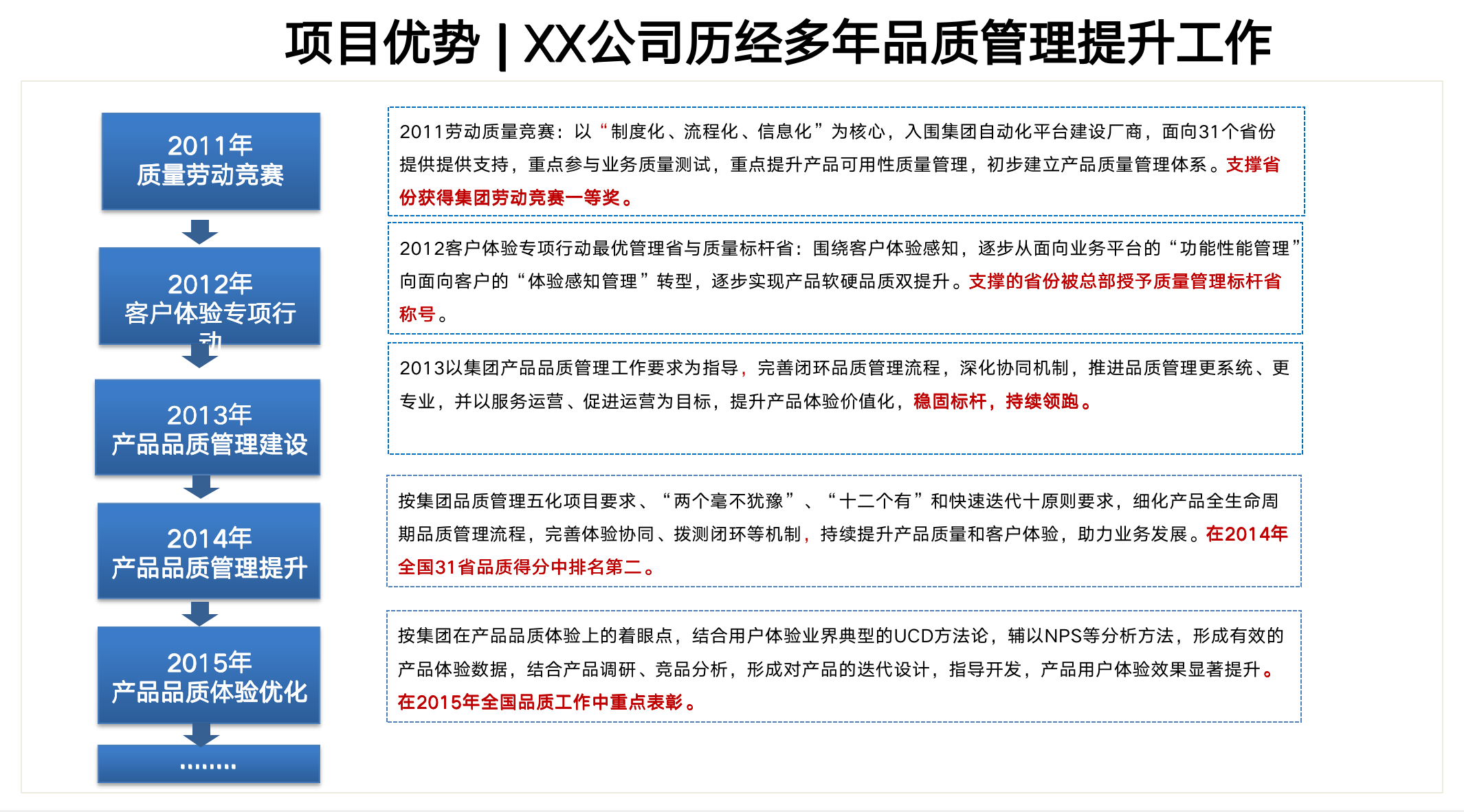 此时相较于其他办公软件,PPT更能清晰以及快速的将公司背景及相应服务能力介绍清楚,帮助用户快速的决策以及为项目立项做准备。