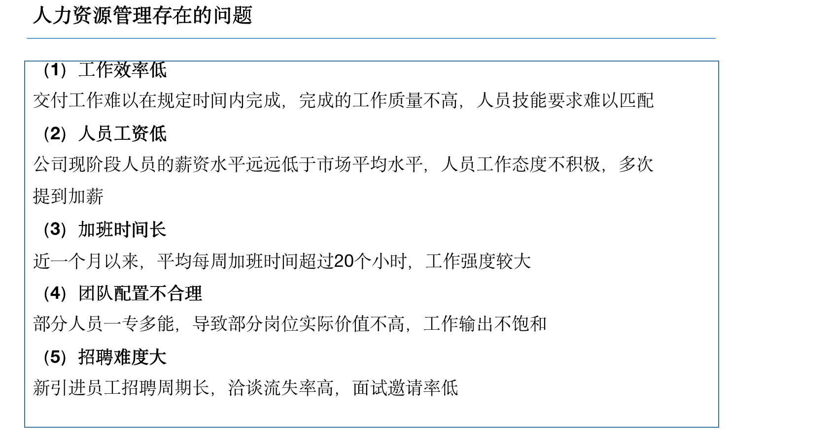 举个例子,项目经理在对人力资源管理这个关键因素进行阐述时,如果没有对信息进行组合的情况下,它呈现方式可能如下: