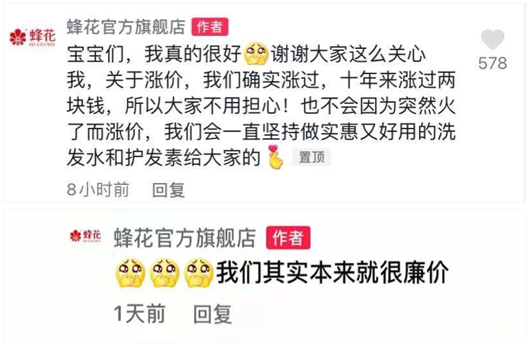 再如前段时间深受关注的雪糕刺客话题,在刺客围追猛打之下,“5毛钱”的雪莲冰砖意外走红;同样的还有好吃不贵的蜜雪冰城;再有如国货之光蜂花护发素,网友呼吁“太便宜了,涨点价吧”,却被品牌自黑“我们其实本来就很廉价”……