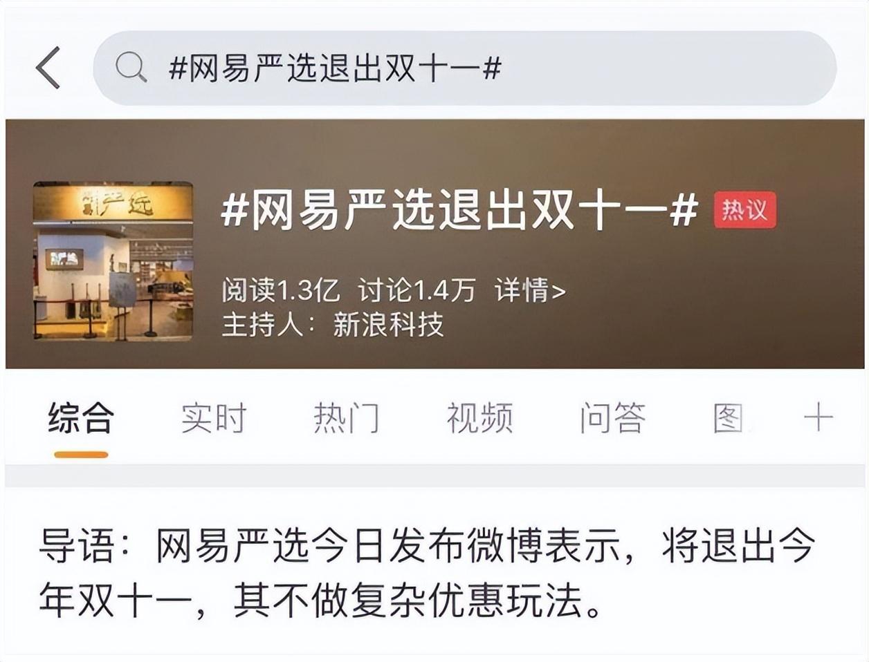 再如2020年“双十一”前夕,网易毫无征兆发出公告信:“今年‘双十一’,我们退出这场大战。”
