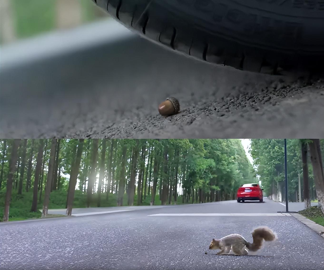 在奥迪A3的一则广告中,一只松鼠带着松果守在一条坡道边,每到红灯一亮,就迅速将松果放在车胎后面。当绿灯亮起、汽车微微后退后再起步驶向远方时,小松鼠不费出灰之力就得到了松果仁。