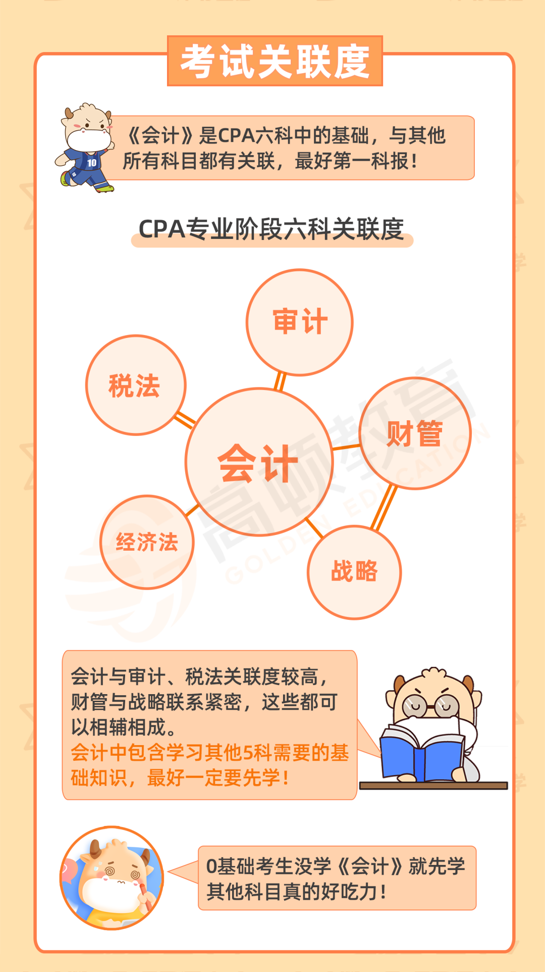 另外《会计》科目与其他各科都有相应的联系,相当于专业阶段的核心: