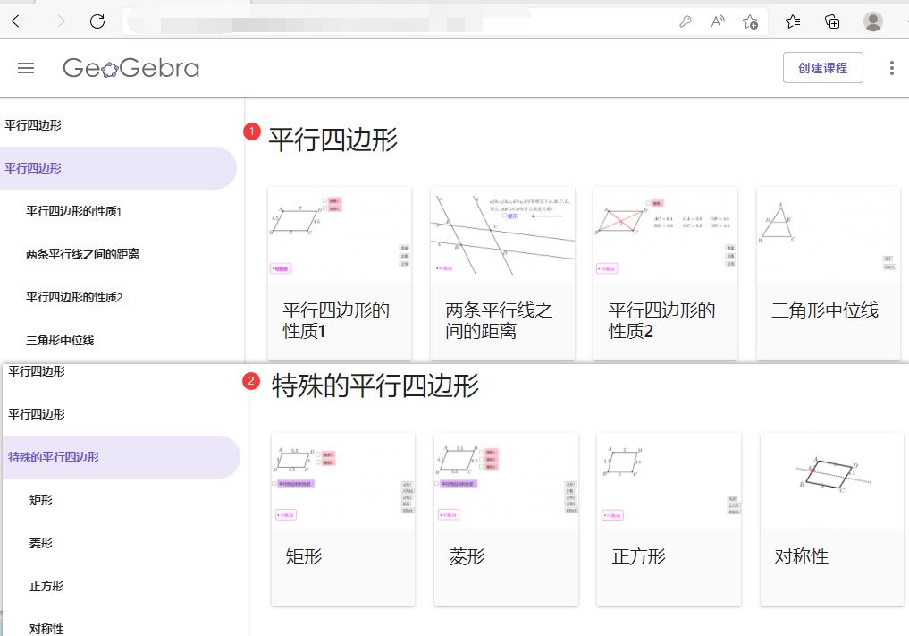 《平行四边形:GeoGebra动态课件》均是啊K使用动态数学软件GeoGebra进行制作。